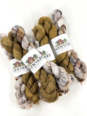 Pictures are a representation of colorway. New photos are not always taken after every batch. Due to the nature of hand dyeing and speckling, each skein is unique and there are no dye lots. Your skein may vary in color and depth of color, but we do try to keep them as consistent as possible.