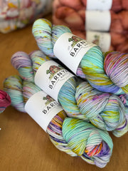 Pictures are a representation of colorway. New photos are not always taken after every batch. Due to the nature of hand dyeing and speckling, each skein is unique and there are no dye lots. Your skein may vary in color and depth of color, but we do try to keep them as consistent as possible.