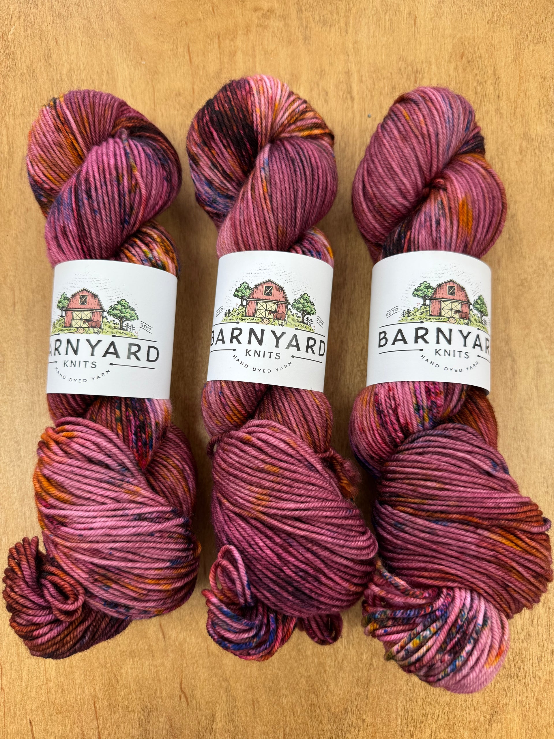 Pictures are a representation of colorway. New photos are not always taken after every batch. Due to the nature of hand dyeing and speckling, each skein is unique and there are no dye lots. Your skein may vary in color and depth of color, but we do try to keep them as consistent as possible.