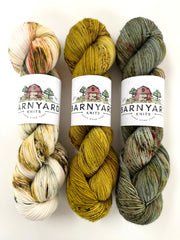 SET INCLUDES 3 skeins of sock/fingering yarn.