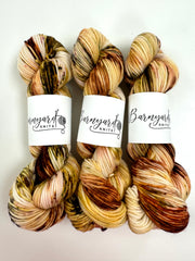 Pictures are a representation of colorway. New photos are not always taken after every batch. Due to the nature of hand dyeing and speckling, each skein is unique and there are no dye lots. Your skein may vary in color and depth of color, but we do try to keep them as consistent as possible.